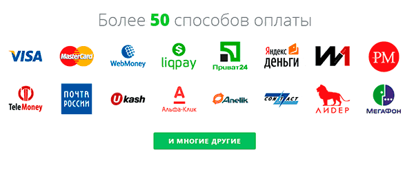 — электронный платеж: Visa, Mastercard, ВТБ24, Евросеть, Связной, QIWI, WebMoney, Яндекс деньги и т.д.